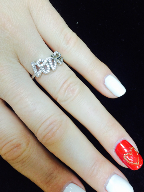 Кольцо бижутерия родированная с цирконами