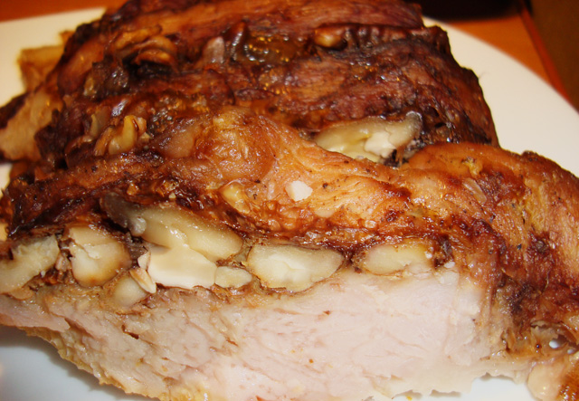 Наши мужчины очень любят мясо, поэтому специально для них приготовлю запеченный свиной окорок с грецкими орехами.