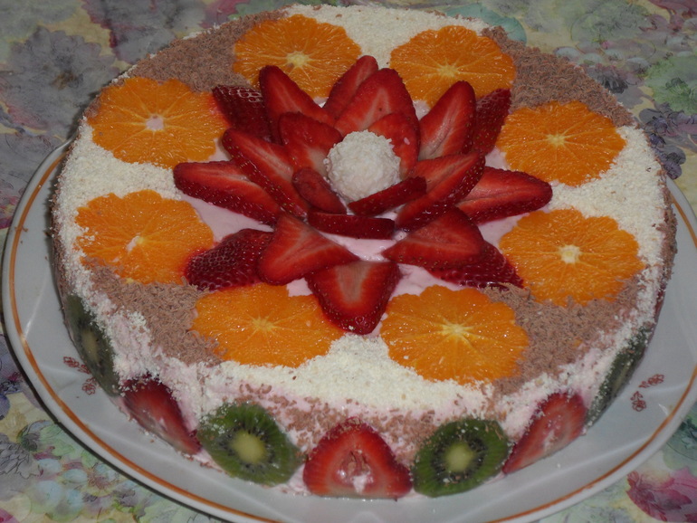 Сейчас без проблем можно найти свежую клубнику в магазинах, поэтому испеку Торт с фруктами и маскарпоне.