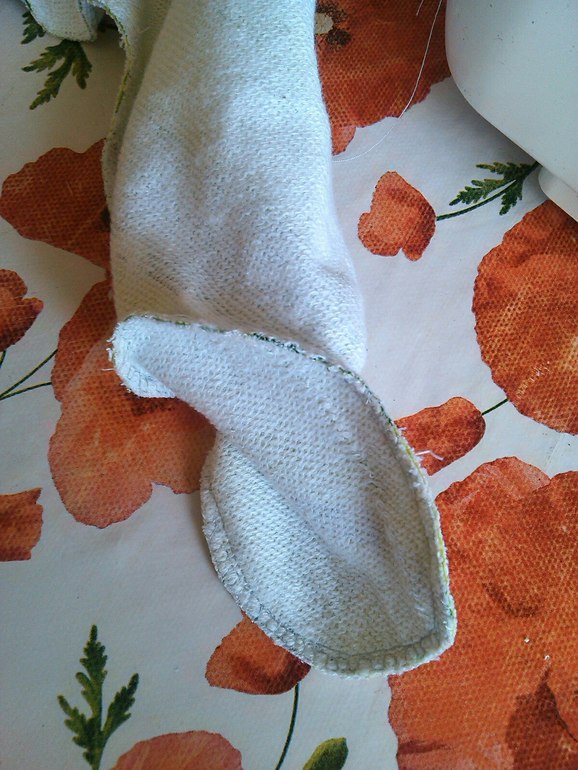 Как обычно, подгибаем и подшиваем, оставляя небольшой взод для резинки.