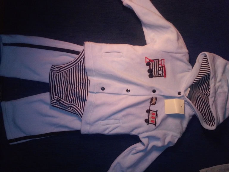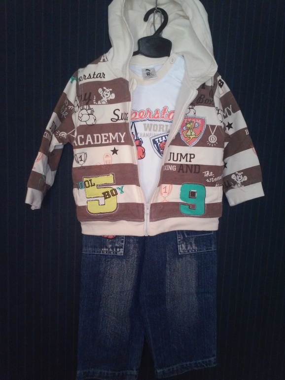Штаны, боди с длинным рукавом, толстовка. Велюр,х/б. Есть размеры на 6 и на 9 месяцев. 700 руб. Тайланд