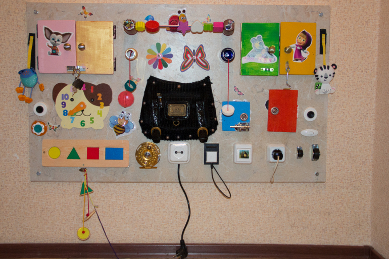 Этот бизиборд папа наш вынашивал дольше, чем я Машу. Родил он его по залету, а потом оказалось по любви)))Я имею ввиду, что я ему проела всю плешь, начиная с Машиных 6 месяцев и вот, Маше полтора года и она уже больше месяца возится с этим хозяйством. А папу процесс увлек, много идей осталось не воплощенных. Может быть я его раскручу на следующий, для племяшки)))