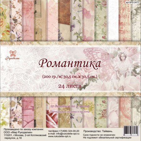 1. Набор бумаги для скрапбукинга, Рукоделие, SPD-2473 (Бумага двусторонняя, 24 листа, 12 дизайнов по 2 дизана каждого Плотность 200 гр.) - 20 листов (4 листа израсходовала) - 250 руб.