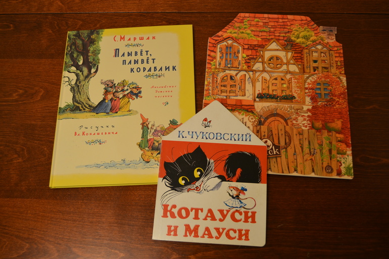 Из песенок начинали с Котауси и Мауси и картонок с Мониным - Кораблика, Котят и Храбрецов (запамятовала сфотографировать). Любимы все это время.