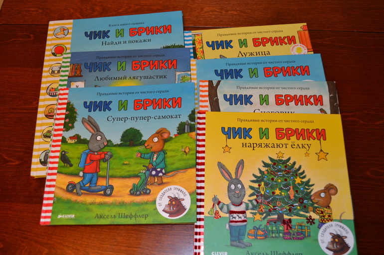 1. Чик и Брики. Эта серия по праву на первом месте, наша любовь и в 1,2, когда появились первые книжки, и сейчас - в 2,7. Близкие темы, притягательные иллюстрации - идеальные книжки для малышей.