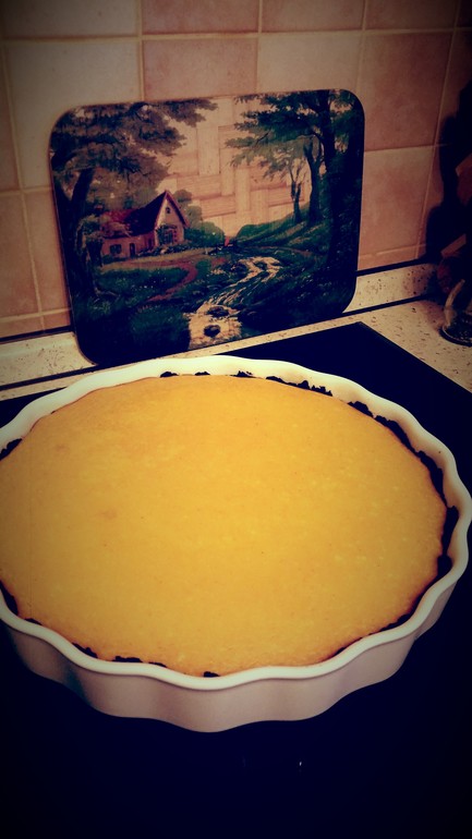 * Когда слегка остынет вылейте на пирог и равномерно распределите