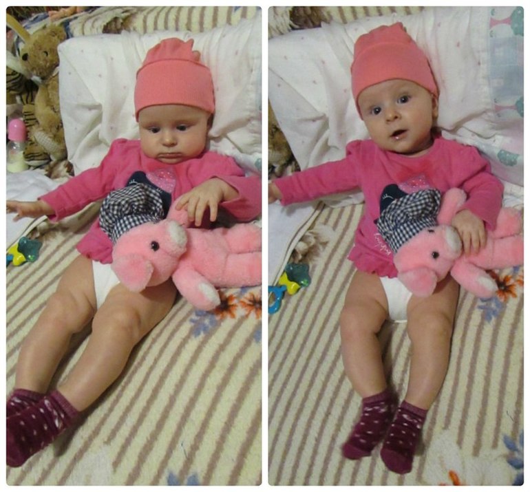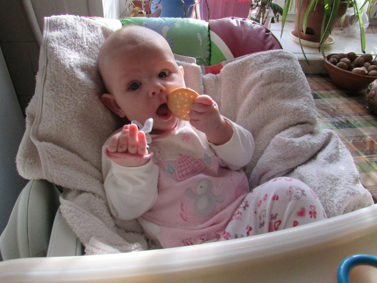 Спим плохо днем и недолго,наверное из-за зубов...Запоры начались опять приходится помогать трубочкой (опять таки грешу на печенье).Ну в общем как-то так.