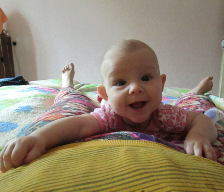 Вообще очень активная доча конечно, уже если успеваю за ней, а что будет дальше, ей быстро все надоедает надо менять игры, рожицы и т.д.