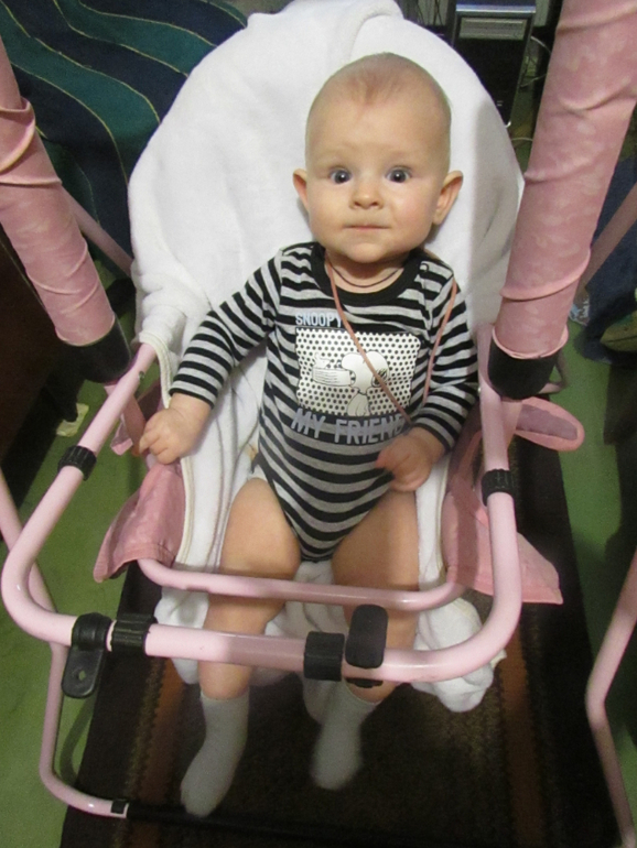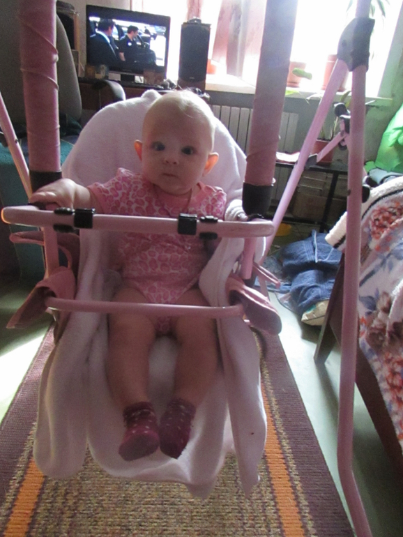 Полинка растет и радует маму каждый день) Научились визжать на ультрозвуке особенно когда хочет спать,но не может раслабится заводит такую сигнализацию,соседи наверное в шоке)