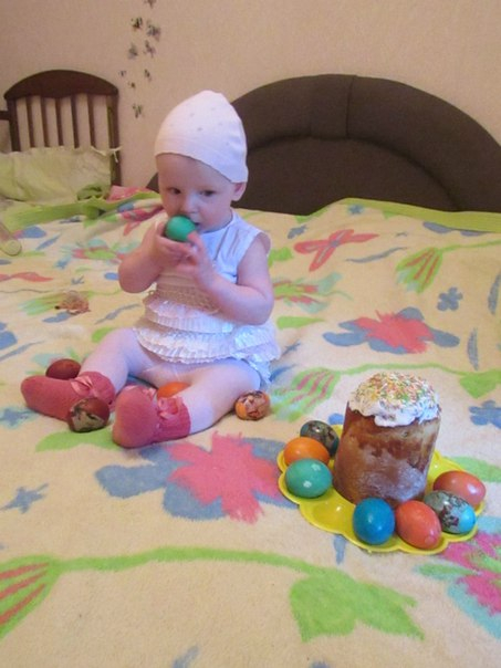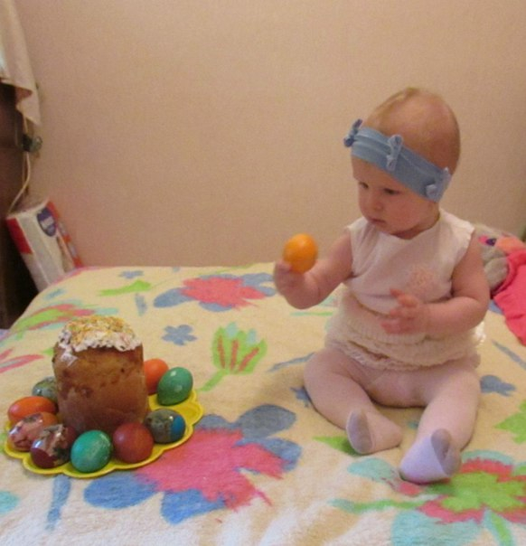Поильник так и не купили,пьем с чашки (правда что-то и на себя выливаем).Зато заказала по укр почте (олх) шапку сову на вырост (давно хотела) и мягкие кубики развивающие,папа на Пасху Машафон нам привезет в подарок))