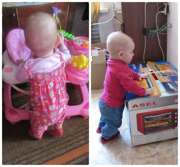 Сидит если посажу сама и спинку держит ровно,но сама пока не садится. Стоит опять же с поддержкой если поставлю уже дольше чем в 7 мес. Не ползаем,только лежим на животе,пытается отталкивается лицом от кровати,но никак.