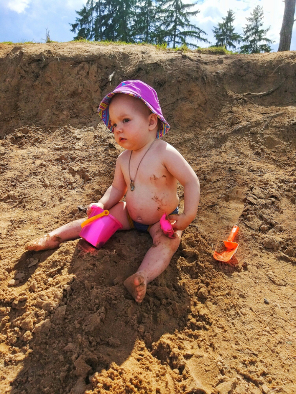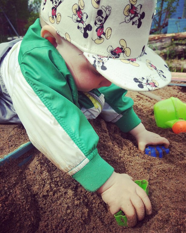 Вика божает играть в писочнице))а мама обожает пить цай рядом на свежем воздухе))У нас оень самомстоятельная девока,можно даже делами своими заняться пока она лепит куличики))Минут 40 ребенок занят))