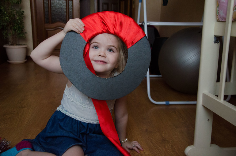 Итак, из плотного картона вырезали подходяще кольцо. Обернули его лентой - наш любимый способ для изготовления цифр на день рождения)). Настя в этот раз справилась почти сама!