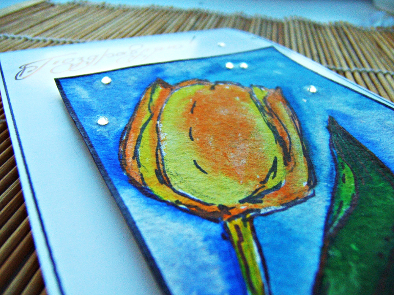 Были трудные дни, плюс весна, которую я не люблю. Вот, дабы себя утешить-потешить сделала открыточку. Сделала и успокоилась и всё встало на свои места.