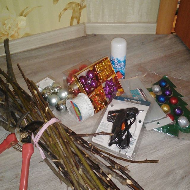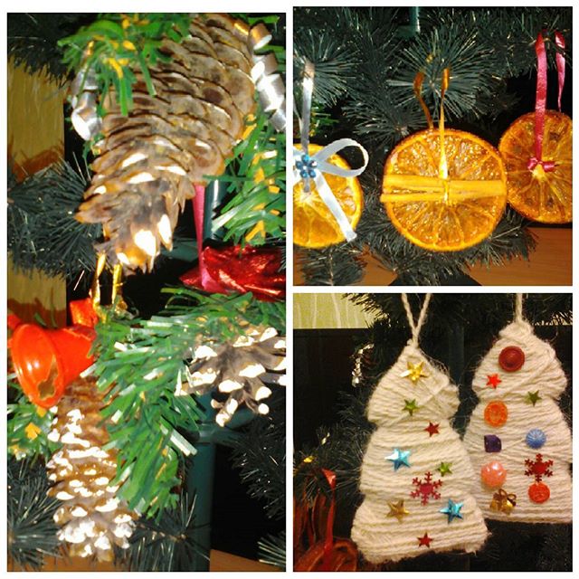 ❄️Задание 5 Создание руками мамы елочных игрушек своими руками. Вот и игрушки висят и ждут дальнейшего использования в новогоднем венке.