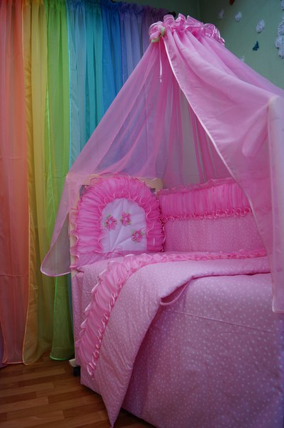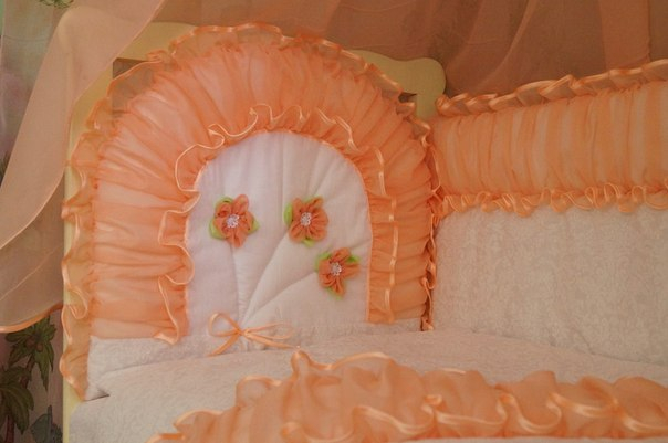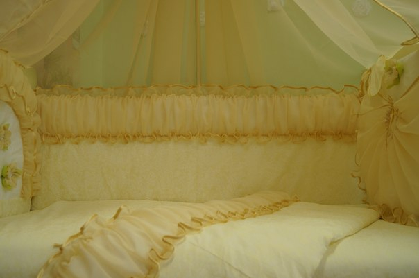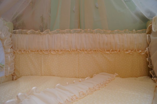 Перед первым использованием рекомендуется балдахин и постельное белье постирать в теплой воде (30гр) с использованием порошка для детей. Бортики и карман прогладить утюгом при средней температуре