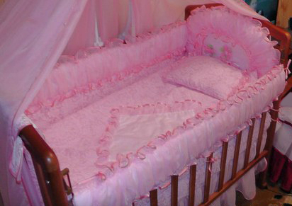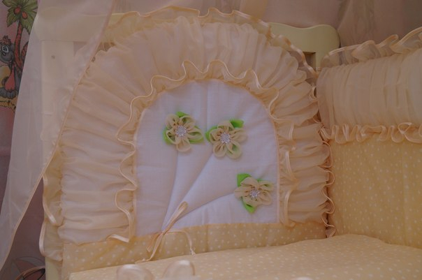 2)Борта на 4 стороны кроватки, высота бортов 45см. Наполнитель: высококачественный холлкон (Материал изготавливающийся по уникальной технологии, антиаллергенный, натуральный, держит и восстанавливает объем гораздо быстрее и эффективнее любых других наполнителей);