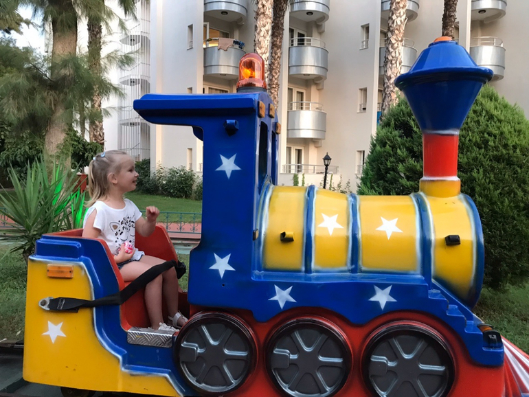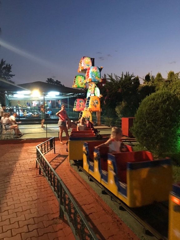 Для детей- рай. Есть мини-клуб, который работает в дневное время, мы туда так и не сходили, потому что все время были в воде))) Горок множество для разных возрастов, есть совсем маленькие для годовасов и очень высокие для взрослых и детей-подростков. Вечером работает парк аттракционов, кататься можно без перерыва на всех каруселях. Также есть детские площадки.