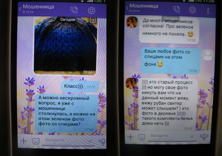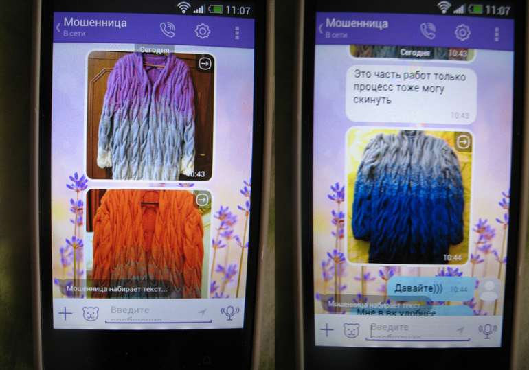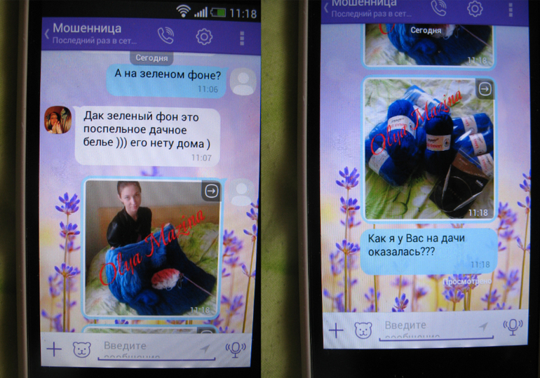 я решила провести свое расследование.... и вот что мне отвечала эта "вязальщица"...она пару раз меняла имя, но телефон то не так просто поменять...она думала, что не пойму, что это она...