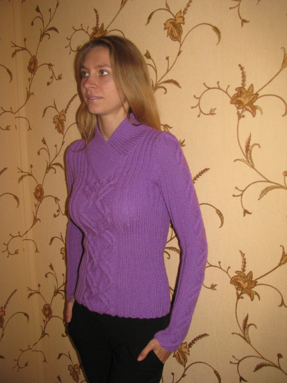 Мой пуловер цвета сирени. Состав пряжи 50%шерсти, 50%акрила. Носится очень хорошо.