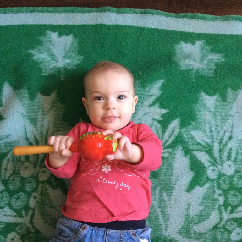 И если раньше сидела с удовольствием на ручках у всех подряд, то теперь маму мы очень чётко выделяем, и сразу к ней рвёмся на руки с громкими воплями, если её долго не было.