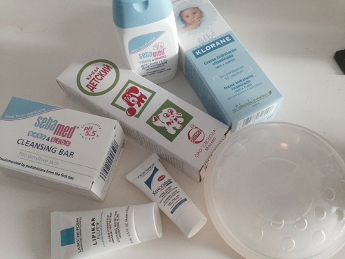 Честно говоря, решила ограничиться одним универсальным средством для мытья всего, подходящим для подмывания, на всякий пожарный куплю одну пачку влажных салфеток, но сомневаюсь, что с девочкой этим пользоваться постоянно правильно, не хочу брать крем под подгузник и присыпку, возьму только Бепантен и Судокрем и ланолин. Вчера мне на обзор привезли коробочку, состоящую из миниатюр детской косметики, выбрала то, что там именно для ребенка, а не для мамы, прибавила купленный любимый детский крем и накладки для груди (зачем я их купила интересно? Но свято верю, что нужны будут)
