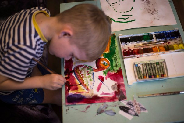 Дома необходимо создать ребенку условия для изобразительной деятельности: выделить место для рисования, лепки, подобрать необходимый материал (гуашь, акварель, фломастеры, цветные восковые мелки, карандаши и др.). Важно понять, какой материал ребенок любит, чаще выбирает, но, может быть, он не знает выразительности других материалов. Покажите ему некоторые приемы. Например, размазывание акварели, создание новых оттенков, цветов.