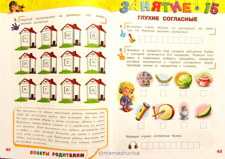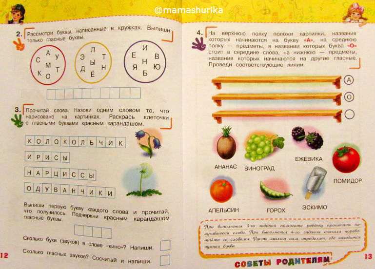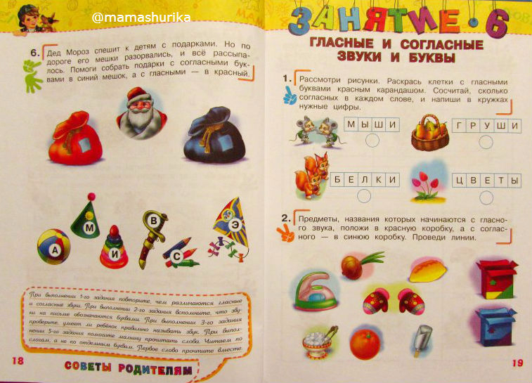 Выполняя занятия, можно научить ребёнка отличать букву от звука, гласный звук от согласного, твёрдый от мягкого. А ещё научится составлять новые слова из слогов и предложения. Тут много разных заданий, ребусы, самые простые кроссворды, задания где надо вписывать пропущенные буквы и много ещё других разнообразных заданий. Так как я сама занимаюсь с Шуриком дошкольной подготовкой, мне такие пособия очень удобны.