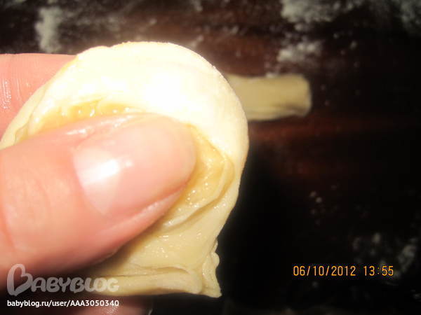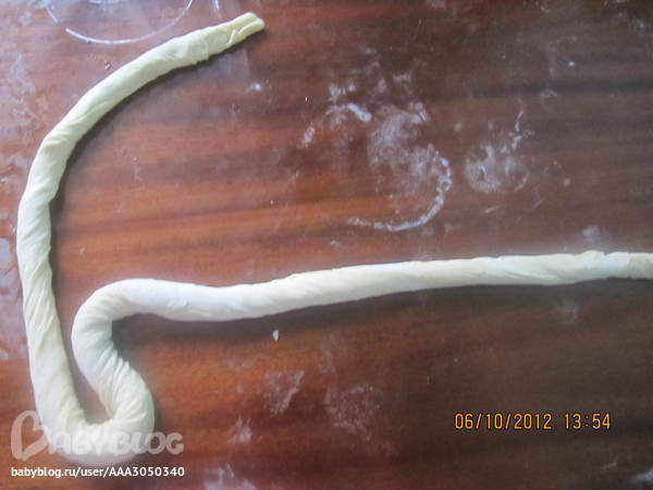 Получается длинная колбаска.Разрезаем на небольшие кусочки.