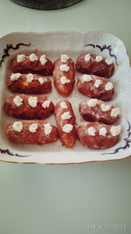 сделать пирожные и обвалять в смеси какао и сахарной пудры