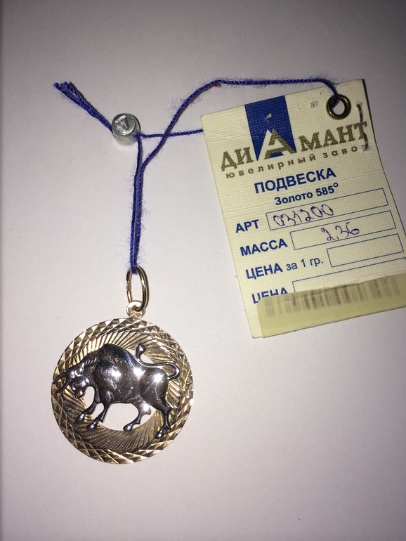 - Золотая подвеска "Телец", диаметр 2,5 см, 2,36 г, 4500 руб.