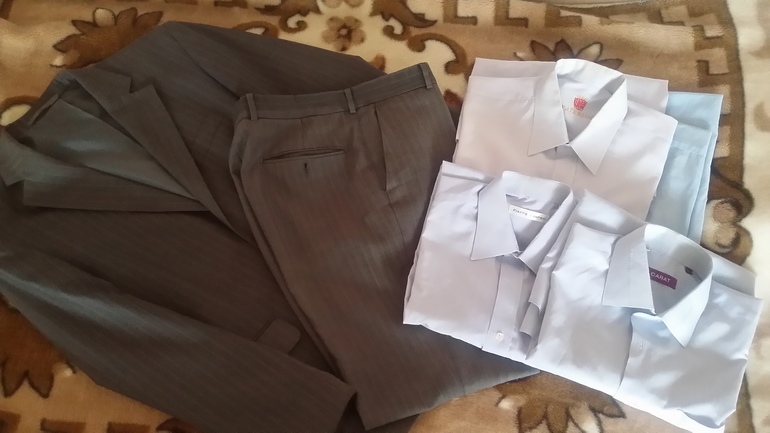 Отдам мужской костю б/у, размер 50 на рост 185, рубашки б/у с длинным рукавом размер 40/184