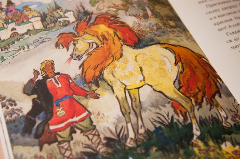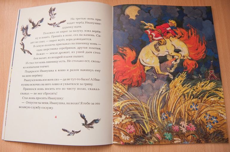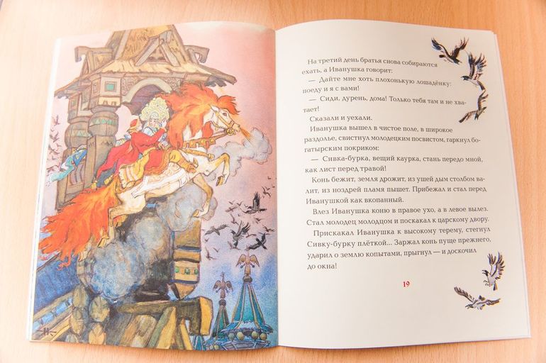 Третье удачное приобретение - опять же по воспоминаниям из детства - красочная "Сивка-Бурка" с великолепными живыми рисунками Николая Кочергина (в пересказе Михаила Булатова) (Озон, Лабиринт, Рид, Майшоп) Прямо отчетливо помню, как мне мама ее читала! Насте тоже очень понравилась! Эти иллюстрации практически оживают на глазах! Как будто дышат...