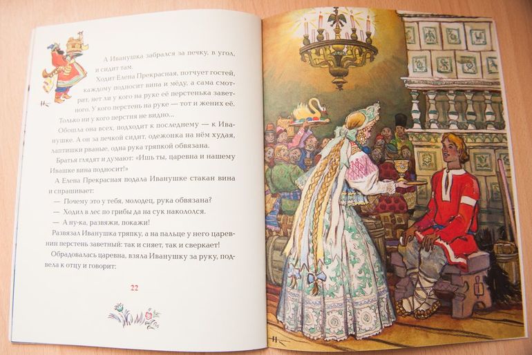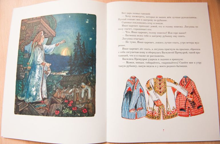 Вторая книжка, о которой хочу рассказать - "Царевна-лягушка" с иллюстрациями Т. Мавриной (Озон, Лабиринт, Рид, Майшоп) Давно эту книжку мне хотелось, потому что никак не могла найти еще более достойное исполнение "Царевны-лягушки". Издалека иллюстрации показались отличными, а при ближайшем рассмотрении - немного разочаровали. Какие-то лица на них глуповато-злые... ну да ладно.. Все равно выкладываю. Обработка текста неплохая. Хотя мне больше по душе версия "Союзмультфильма")))))
