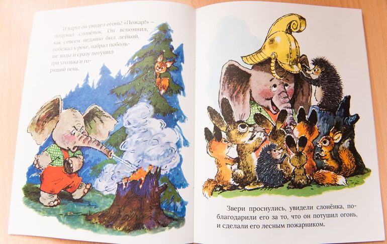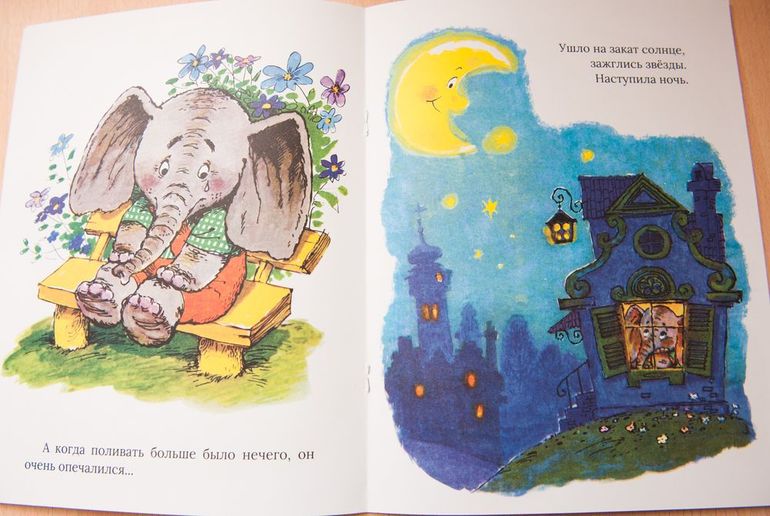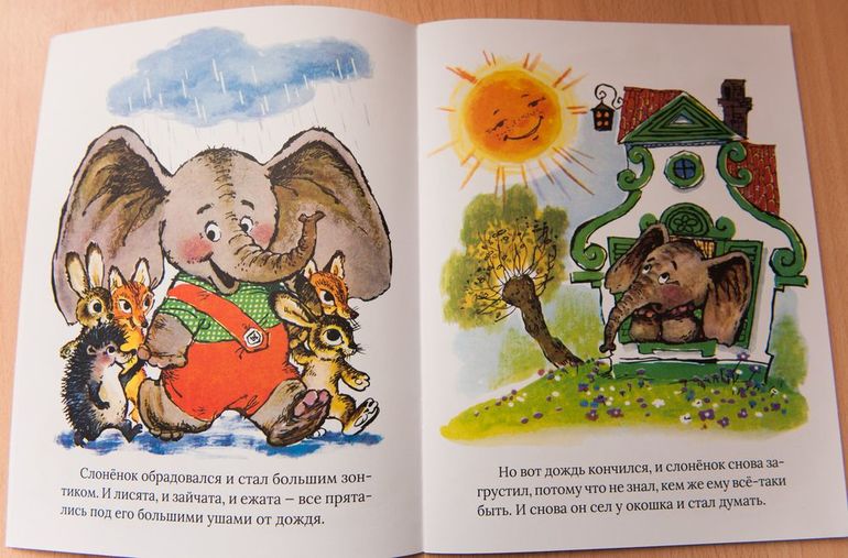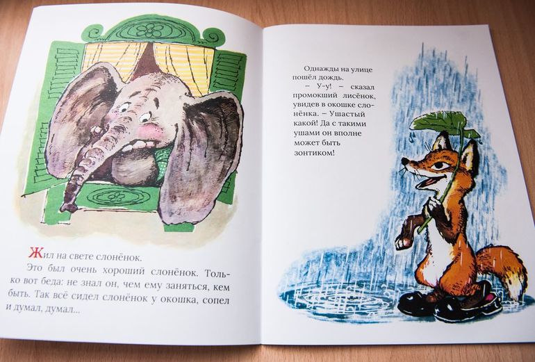 Первое, что увидела - книжку прям из детства, каждую ее картинку помню! Точно такая же у меня была! Г. Цыферов "Жил на свете слоненок" (, Лабиринт, Рид, Майшоп) Милая история о слоненке, который хотел приносить пользу. Он был сначала зонтиком, потом лейкой, а потом спас лес от пожара. обожаю ее!!! И Настя тоже! Уже зачитали до дыр)) Художник Т. Зеброва.