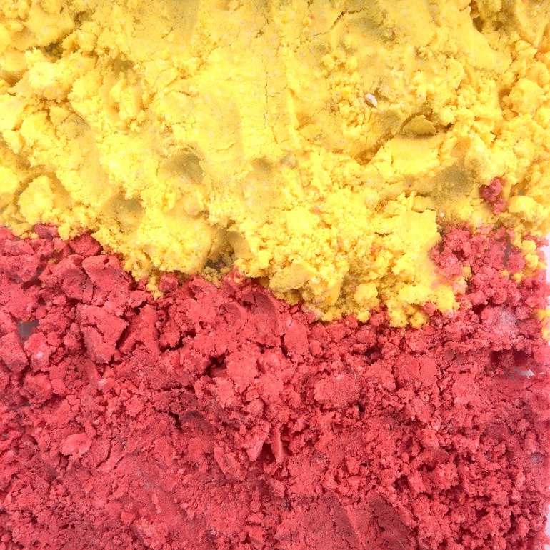 Краситель лучше брать жидкий, потому что порошковый оставляет следы на руках или на ногах, если вы сенсорите так же активно, как и Жанна!