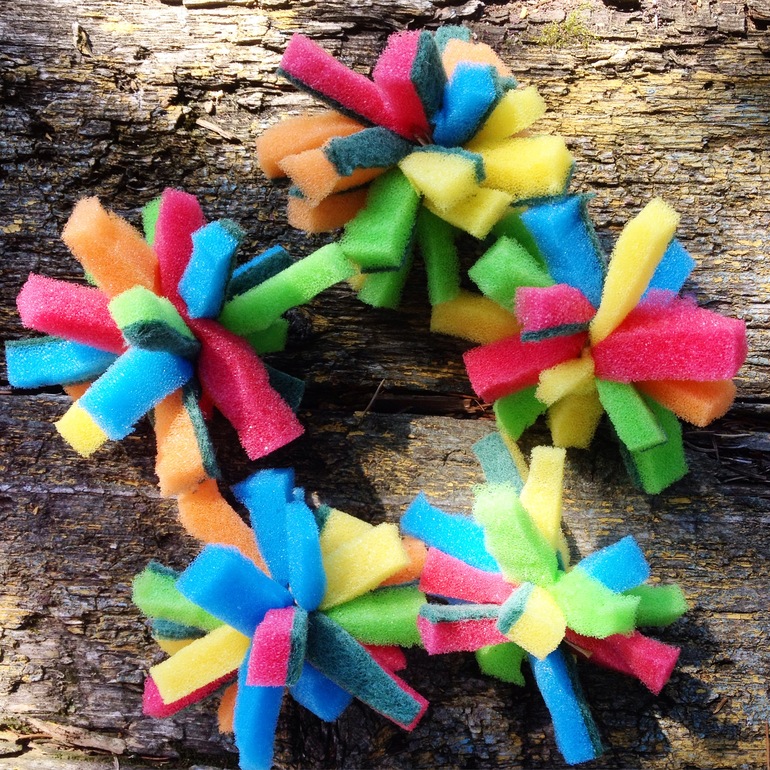 7. Для игр с водой я сделала вот такие мячики из губок для мытья посуды. Идея с .