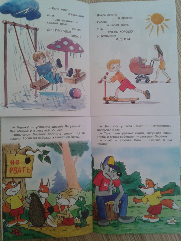 Раз-горох, два - горох. Забавная история о Хоме и Суслике. Учит уважительно относиться к труду других и не брать чужого. Хома и Суслик поучали пузатого воробья, что чужого брать нельзя. А сами залезли в чужой амбар и еще из-за холявного гороха перессорились. Воробей увидел это и пристыдил зверушек. Арише очень понравилась.