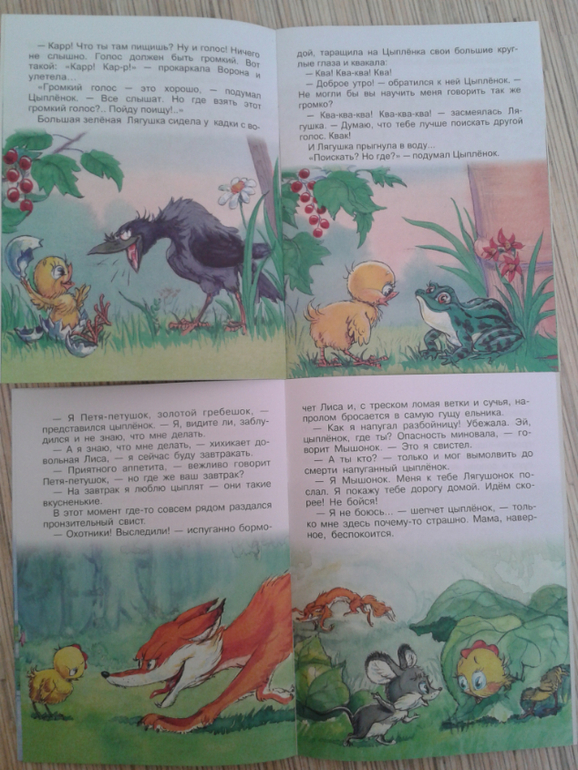 Как цыпленок голос искал. Простенький рассказик о том, что надо любить и принимать себя таким, какой ты есть. Цыпленок родился и узнал, что у него тихий голосок. (ворона постаралась). И пошел малыш искать себе громкий голос. У всех спрашивал-спрашивал и в итоге встретился с мамой-курицей. Она рассказала цыпленку, что важно иметь не чей-нибудь голос, а СВОЙ.