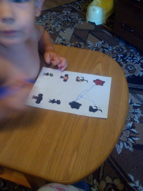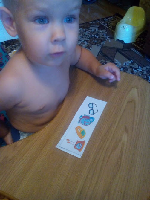 7. Волшебный мешочек. Так я назвала игру на развитие тактильных ощущений. Прошу Ваню достать что-либо, он ищет. Сегодня так хотел достать машинку, что пока я не попросила машинку, он 2 раза доставал её, путая с вертолётом и прищепкой. Потом пошло без ошибок.