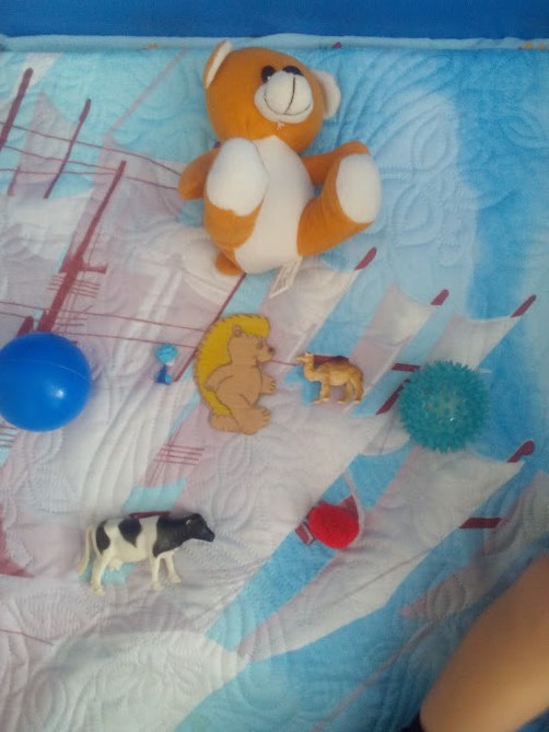 2. "Дай мне" Здесь я раскладываю различные предметы, игрушки и прошу дать мне одну по описанию. Например: