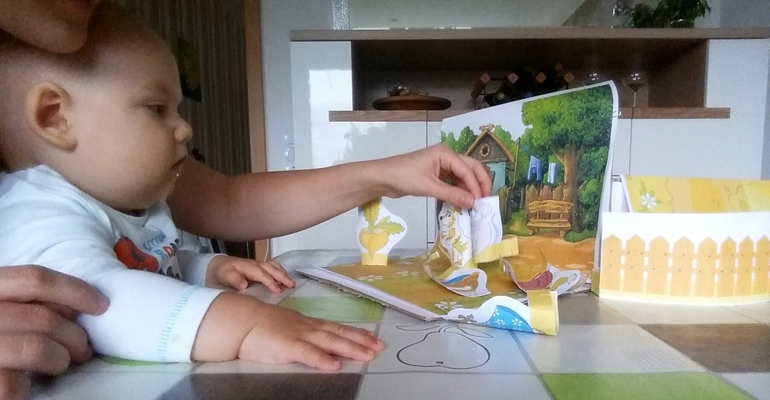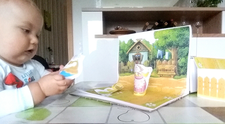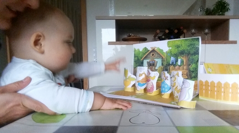 Когда я начала рассказывать и показывать, сын удивлялся,дергал ногами, на своем что-то лепетал, или просто тихонько наблюдал) Было заметно, что я его заинтересовала сказкой)