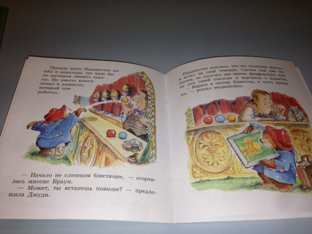 Серия про Паддингтона. Появилась у нас недавно, текста тут уже побольше. Иллюстрации на каждом развороте, достаточно приятные. Рада, что купили именно в дорожном формате, мне показалось что это не МАСТ хев, но пару раз прочитать можно. Ребенку истории понравились ( читали еще не все пока)