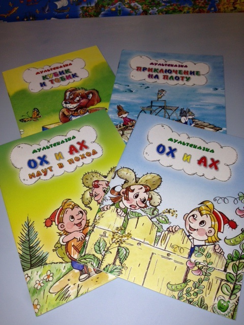 Серия Мультсказка. Тоже отлично для малышей - текста мало, истории небольшие. Формат у книжек а5, страницы матовые достаточно плотные. Цена у этих книг копеечная. Левику нравятся истории про Ах и Ох, Путешествие на плоту пока не особенно.