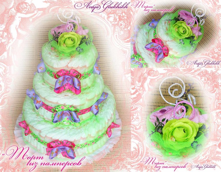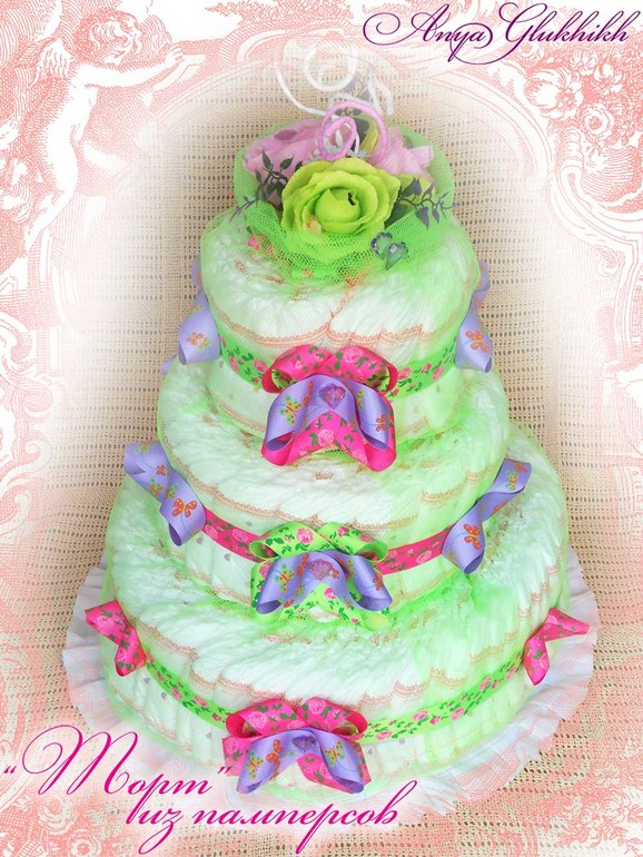 Первый мой «тортик» из памперсов ;-) до этого использовала лишь по прямому их назначению :-D