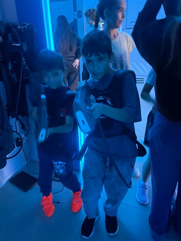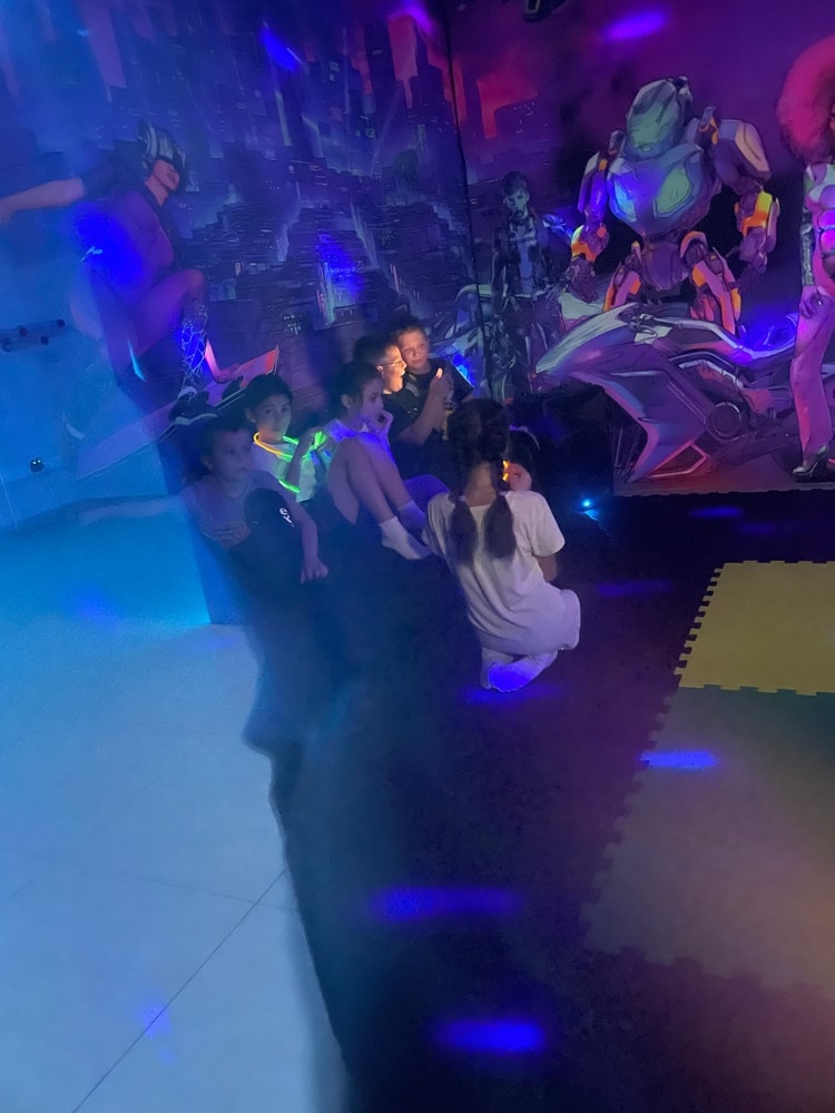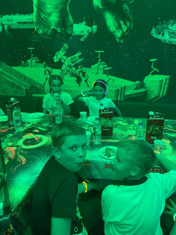 Так как среднему сыну не везде было можно - я была с ним в интерактивной комнате, а муж тусил со старшими. Лазерный бой особенно понравился. 😁