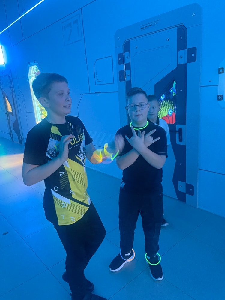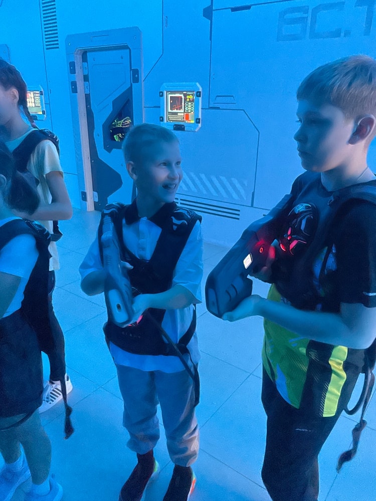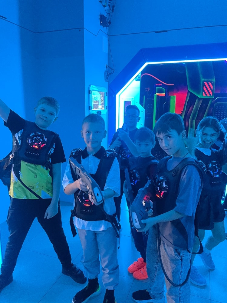 В лазерном бое была команда мальчиков и команда девочек во главе с папой 😁