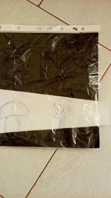 Идея такая, когда "фонарик" (он же белый трапециевидный кусочек белой бумаги) засовывается в файл, то нарисованные на файле рисунки "проявляются". Прошу Соню найти тот или иной рисунок.