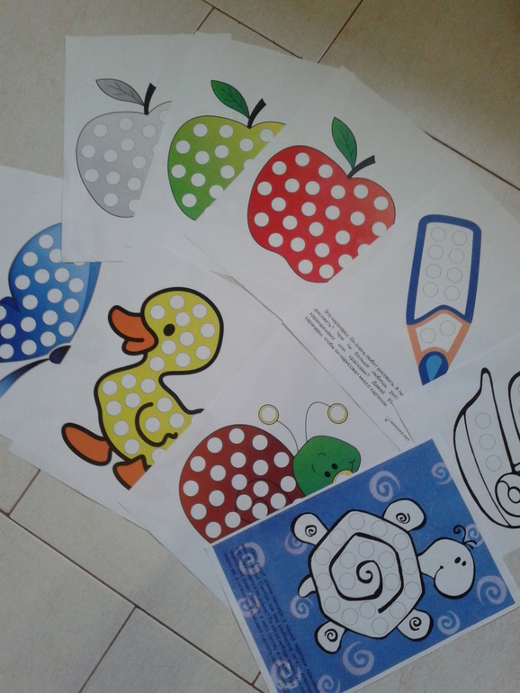 Наконец-то добрые родственники распечатали нам разные варианты картинок-заплаток. У нас были подобные задания с наклейками, и мне все хотелось попробовать такие картинки, которые можно закрывать бусинками или камешками Марблс. Часто в своих постах мамочки показывают такие картинки и уверяют, что деткам очень нравится с ними заниматься.