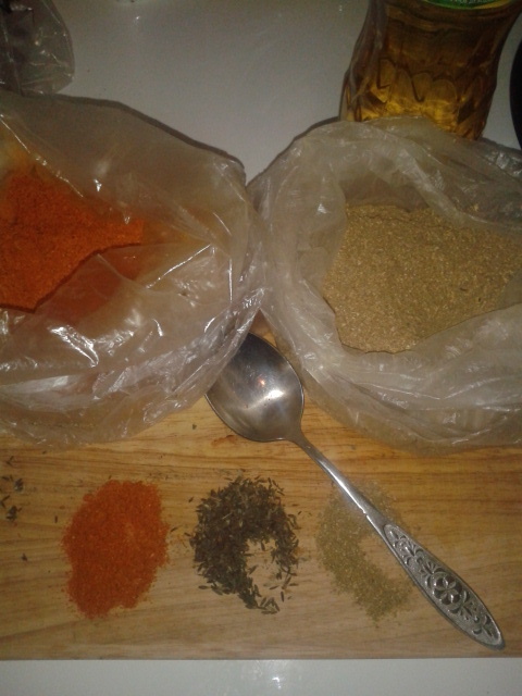 специи ( у меня соль,молотый кориандр,молотый острый красный перец,зира )
